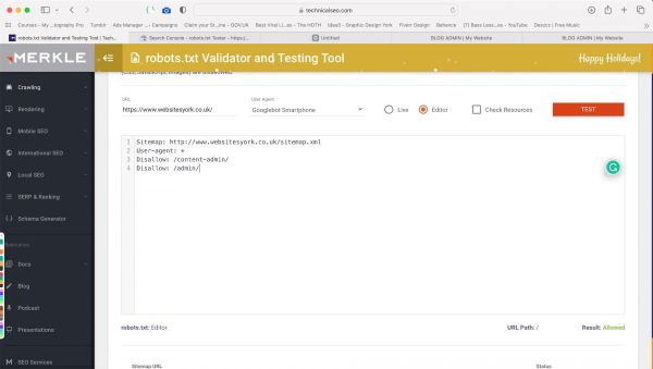 For example, for the website ‘www.websitesyork.co.uk’, you would find the robots.txt file at: ‘www.websitesyork.co.uk/robots.txt’. A robots.txt file should always be found in the root directory of your domain. Search engine crawlers will assume you do not have a robots.txt file set up if it is to be found anywhere else.